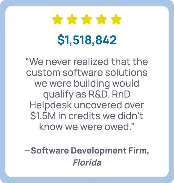 We’ve processed millions in R&D tax credits for companies across the U.S. Our team knows exactly how to navigate the system, maximize your credits, and keep the IRS from taking what belongs in your business.